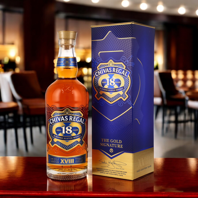 Der Chivas Regal 18 Years ist ein edler Premium-Blend, der aus mehr als 20 verschiedenen Malt- und Grain-Whiskys komponiert wird. Er reift mindestens 18 Jahre in ausgewählten Eichenfässern und überzeugt mit reicher Aromatik und geschmeidigem Charakter.