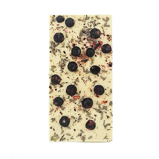 Die Premium-Schokolade von Ritonka aus Österreich verbindet cremige weiße Schokolade mit der fruchtigen Frische von Johannisbeeren und der feinen Blumigkeit von Lavendel. Ein edler Genuss, handwerklich hergestellt.